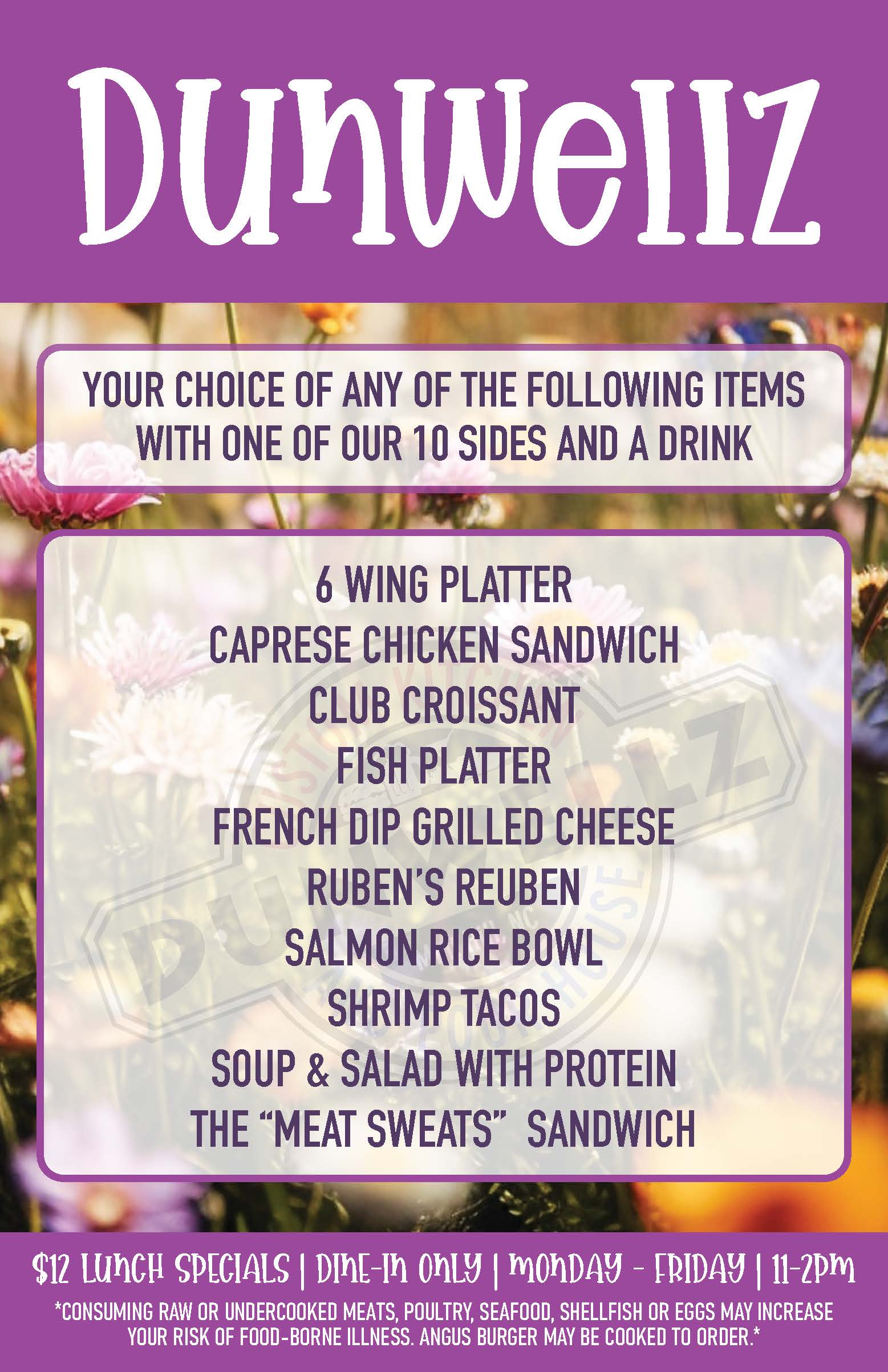 Main Menuz Spring $12 Lunch Specials (Mon – Fri) Food Menuz View/Print Menu Main Menuz » Spring $12 Lunch Specials (Mon – Fri) » Proudly serving Boar’s Head deli meats and cheeses and custom baked breads from two local bakeries. 18% gratuity added for parties of 7 or more Drink Menuz View/Print Menu Liquor List » Beer List » Daily Specials » Drink Menuz »